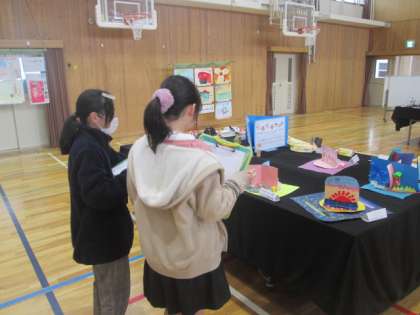 本日まで体育館で開催された,九条塔南アート展。各学級で,授業中に時間をとって鑑賞しました。鑑賞も,大切な図画工作の学習です。友達の作品のよいところを見つけながら,思い思いに鑑賞していました。