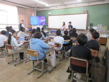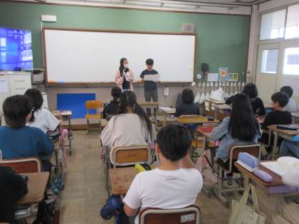 国語科「伝わるかな、好きな食べ物」の学習に取り組み、好きな食べ物の様子が伝わるように書いた説明文を、日直当番が朝の会で伝える取組をしています。