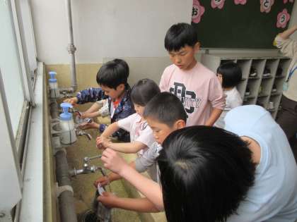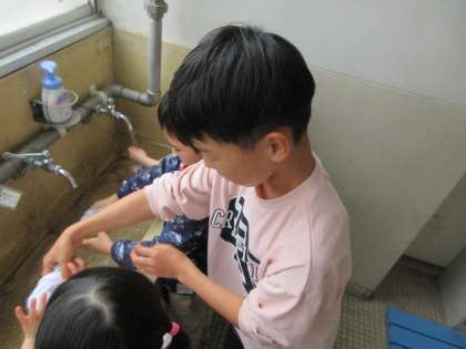 本校では幼保小連携架け橋プログラムの一環として、1年生の入学後から2年生〜6年生が1年生の学校生活をサポートする取組を進めています。