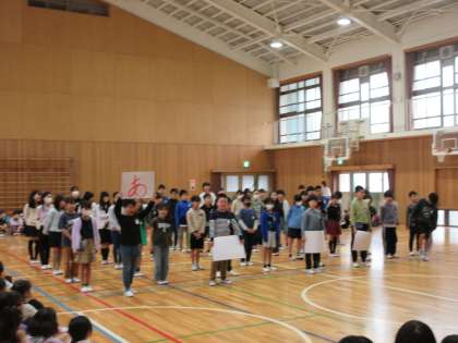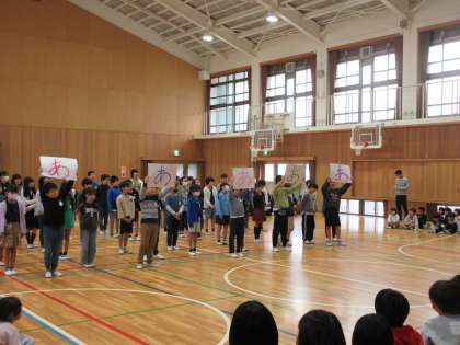 今日、1年生を迎える会をしました。5年生からは、「5つのあ」について発表しました。緊張もありましたが、聞き取りやすい声で言うことができていました。