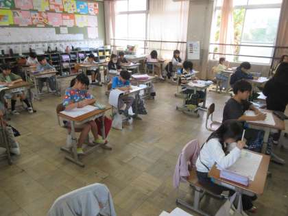 2年生までに学習した漢字がどれくらい書くことができるのかを確かめる漢字の実力テストに取り組みました。