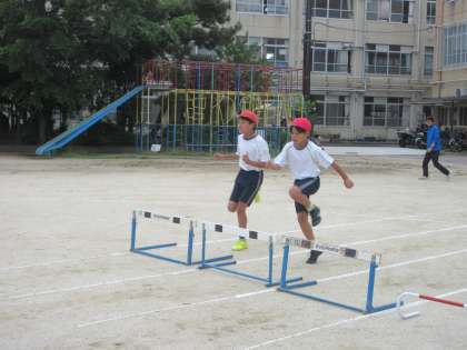 今週から6年生ではハードル走の学習が始まりました。自分に合ったインターバルを探りながら、より速くゴールできるように思考して取り組むことができています。