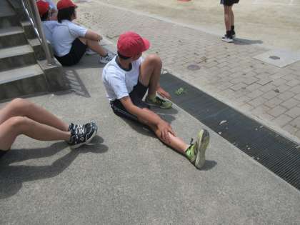 入念なストレッチとフォームの確認をした後は、ハードルとハードルとの間のインターバルを3歩や5歩のリズムで走りながら、ハードルを越えてゴールを目指しています。