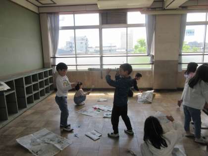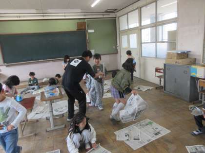 図画工作科「しんぶんしとなかよし」の学習に取り組みました。