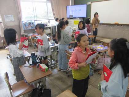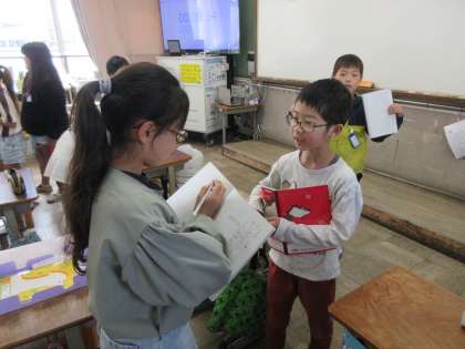 友達の出すクイズに答えるだけでも楽しそうでしたが、聞いたことをメモする活動を通して、大切な内容を聞き漏らさない工夫に気付くことができていました。