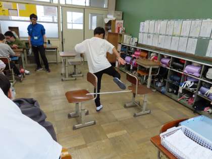 梅雨時も近づき、雨天のため屋外で体育ができない日もあります。そんなある日、6年生では教室でハードル走の研究会を開きました。GIGA端末や教室にあるものを活用し、次のハードル走の学習に向けてポイントをおさえたり、お互いに意見を交流し合ったりすることができていました。