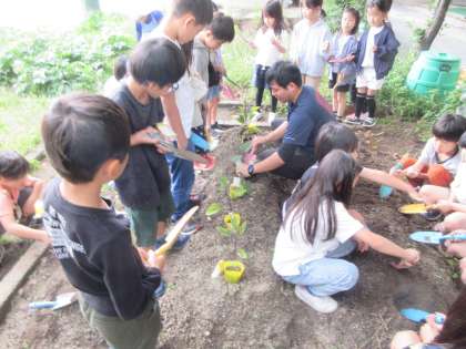 生活科「おいしいやさいをそだてたい」の学習で、いよいよ野菜の苗を植えました。