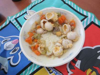 子どもたちに「よく噛んで よく食べよう」と指導しています。