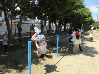 「校長先生、鉄棒の前回り(前方指示回転)ができるようになったよ。」と嬉しそうに教えてくれた子どももいました。