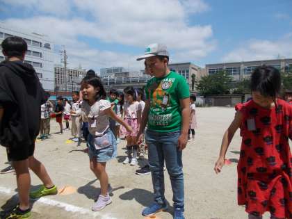 運動委員会の最初の取組は、1年生に立ち幅跳びの仕方を教えることでした。当日、1年生の隣につき、見本を見せながら優しく丁寧に教えていました。「跳び方うまい!」「しっかり腕をふれているね!」と5・6年生が1年生に褒めている姿がたくさんありました。1年生は体力テストで教えてもらったことを生かして、一生懸命跳べるといいですね!