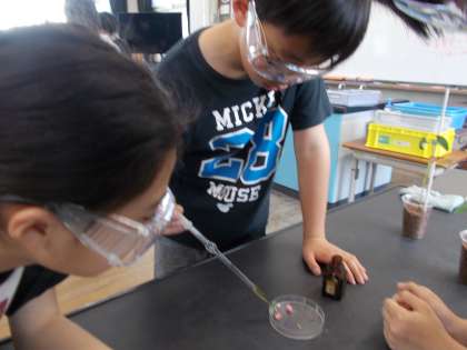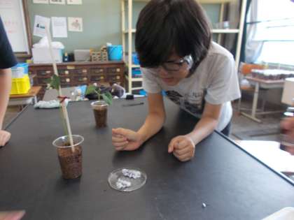 ヨウ素液を使って植物にでんぷんがあるのかを調べました。色の変化をしっかり観察し、結果をまとめることができました。
