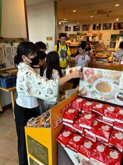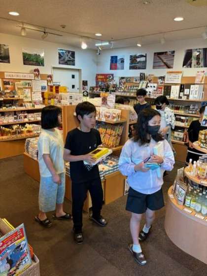 入浴を先に終えた子どもたちも、お土産コーナーにて楽しそうにお土産を選んでいます。