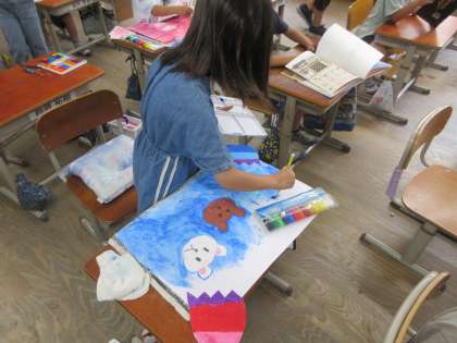 図画工作科「ふしぎなたまご」の学習で、たまごをつくりながら感じたことや想像したことをいろいろな形や色を考えたりしながら自分なりに表しました。