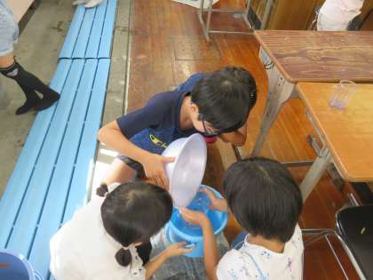 最初はなかなかぴったり1Lをはかり取ることは難しかったですが、何回か繰り返していくうちに、何人もの子どもたちが、1Lピッタリに量り取ることができました。