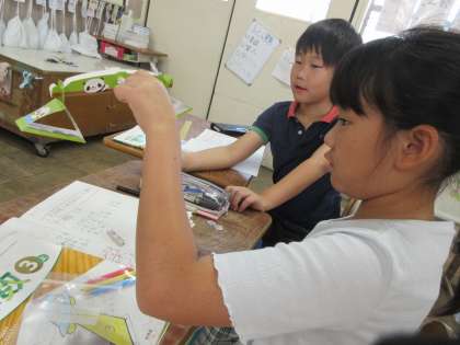 キログラムという言葉は知っているけれど、どれくらいの重さかどうかは分からない…。ということで、色々な物を量ったり、1キログラムぴったりを目指して砂を入れてみたりと、体験することを大切にしながら学習を進めてきました。