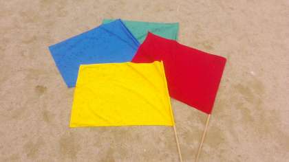 その後の子ども達の様子は、成就感に満ちていました。ふとフラッグを見ると、これまでの練習で先の方が傷ついていることに気づきました。