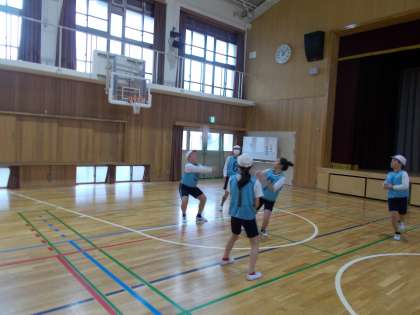 体育科ではソフトバレーボールの学習をしています。最初は、1回のレシーブで相手コートにボールを返していましたが、回数を重ねていくうちに2回・3回とチームでボールをつなぎながら相手コートに返せるようになってきました。声をかけあいながら一生懸命取り組んでいます。