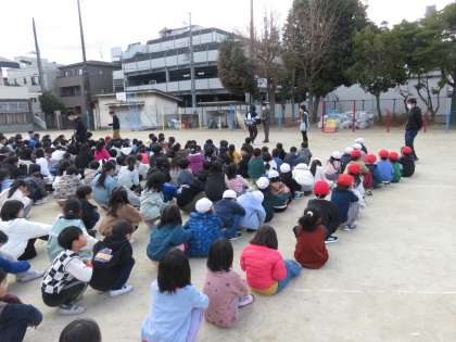 運動場や教室、廊下など、それぞれの場所で自分たちで考えて身を守る行動をとり、その後、運動場に速やかに避難をすることができました。
