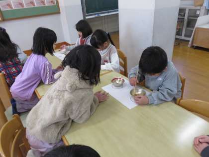 どちらのクラスも、たくさんの豆を移し替えることができていました。