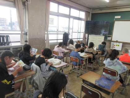 朝は読書からスタートします。一人一人集中して読書しています。