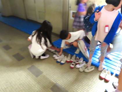 2年生となり、はじめは靴もバラバラに置かれていました。しかし、日を重ねるごとに、友達の靴を揃えようと行動する人が増え、自分から揃えて靴を脱ぐ人が増え、1か月で2年生の子ども達の成長がはっきりと感じられました。