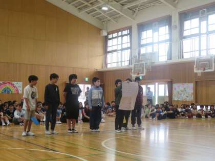 子どもたちの「したい・やってみたい」を集め、一から子どもたちがセリフ・立ち位置・小道具を創りあげました。今日の本番は大成功!自分たちがつくったもので1年生をはじめ、周りの下級生など多くの人を楽しませることができました。