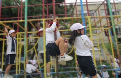 体育科では遊具の安全な使い方を学び、安全に使えるように実際に使って遊んでいます。