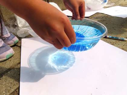 「光のプレゼント」でできた影は、幻想的な色合いや揺らぎとなって、画用紙に映し出されました。
