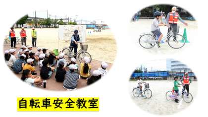 南警察署の交通警察官と交通安全対策協議会の方をお迎えして、自転車に乗る際の交通安全についてのお話を聞いたり、自転車の安全な乗り方について教えていただいたりしました。