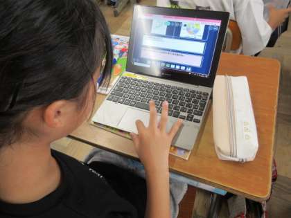 社会科の学習では、米作りのさかんな地域について学習をしています。今日は2つの資料から気づいたこと、分かったことをロイロノートにまとめました。