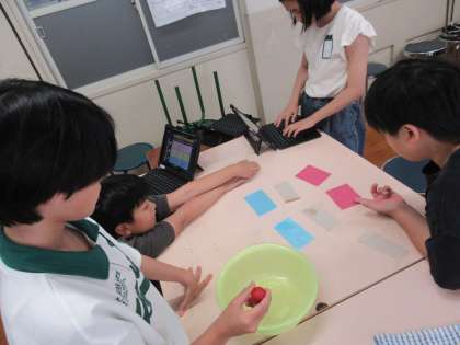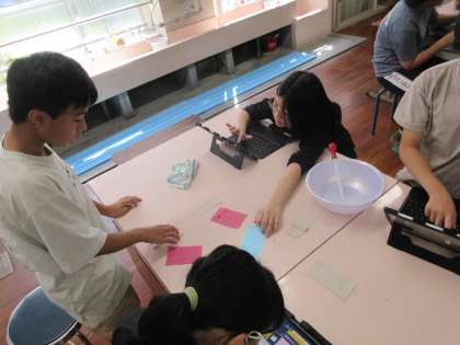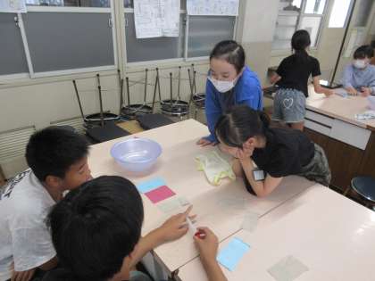 家庭科の学習では、夏をよりよく過ごすための工夫を考えています。今回は布の性質を比べて、夏に着る服装について考えました。水の吸いやすさや乾きやすさから、遊ぶ時の服装や山登りをするときの服装など、場面によっての工夫を考えることができました。