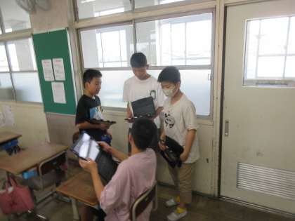 国語の学習では、デジタル機器との向き合い方について学習しています。デジタル機器の弱点からよりよい向き合い方を提案しています。発信するときに注意点ややり取りの仕方、健康についてなど様々な視点を取り入れながら良い方法を考えていました。