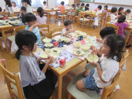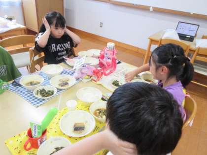 「まほうのたべかた」を教えてもらって、ランチルームで給食を食べました。