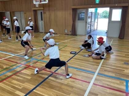運動会でたくさんの方々に白熱の演技を見てもらいたい!という思いをもって、体育の学習で「ソーラン節」の練習に励む4年生。