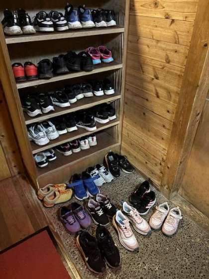 ロッジに集まった子どもたちが脱いだ靴がきちんと揃っています。