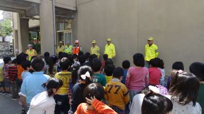 いつも,登校のときに見守ってくださる地域の方と一緒に,1年生はしっかりお話を聞いていました。