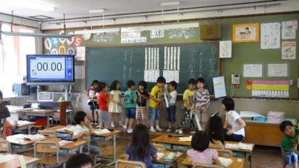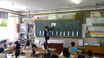 入学してから2カ月,小学生らしくなってきた1年生です。みんなの中でもしっかりお話を聞けるようになってきました。また,国語「あいうえおであそぼう」では,1人1人が工夫して「あいうえおのうた」を作り,楽しく発表することができました。