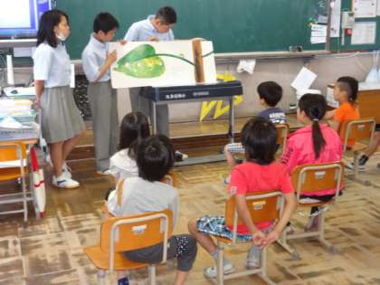 楽しい小中連携読み聞かせの会となりました。帰っていく中学生を見送る1・2年生の子どもたちから「楽しかったよ。」「また 来てね。」というこえをかけられ,中学生も満足気な顔で帰って行きました。