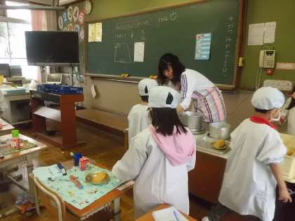 よそったり,運んだりと,大忙しの給食当番です。