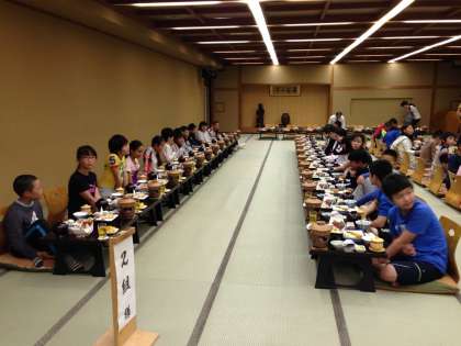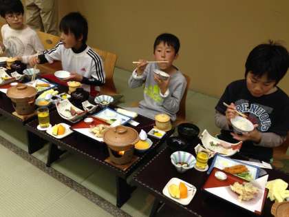 さぁ,待ちに待った夕食です。豪華な食事に,大喜びです。いただきます!!