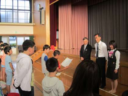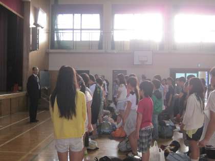 体育館で行われた解散式も,話す態度・聞く態度ともに,立派でした。2日間の活動で学んだ集団生活のルールやマナー,そして,深まった仲間の絆など,体験し得たものを大切にしながら,学校のリーダーとして今後も活躍してほしいものです。
