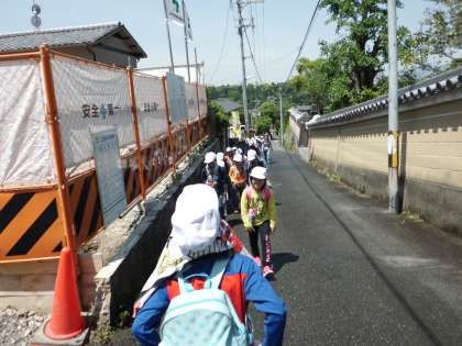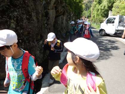 朝から雲ひとつないお天気に恵まれ,学校を出発。登山は初めてという子どもが多く,張り切って歩き始めました。