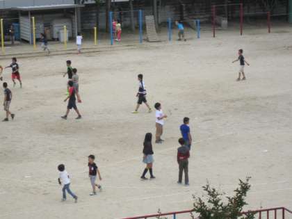 昨夜からの雨があがり,いつから運動場で遊べるのか,子どもたちはソワソワ。