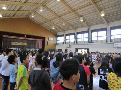 「1年生になったら」をみんなで合唱。大きな歌声が体育館に響き,伴奏の音楽が聞こえないほどの合唱になりました。