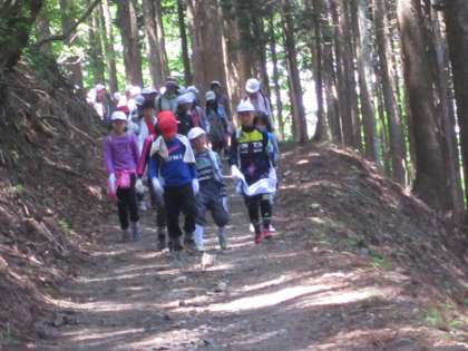 お天気に恵まれた登山ですが,山の中で少しぬかるんでいるところは,要注意です! 山ヒルがいるかもしれません!! みんな靴下の中にズボンのすそを入れて,万全の状態で頑張りました。