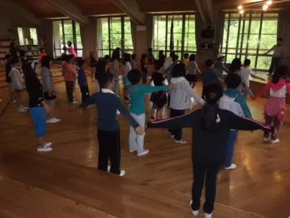 おはようございます。今日は山の家での最終日です。今日の目標は「感謝」です。楽しい思い出をたくさん作った山の家での活動に「感謝」して一日を過ごしたいと思います。朝の集いや朝食の後は,帰る準備をします。「来た時よりも美しく」,自分たちの部屋をきれいにして帰りたいと思います。