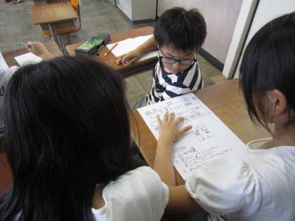今まで「たてわりグループ」という呼び方をしていましたが,もっと親しみやすい名前をつけようというものです。集まっていた代表委員が,アイデアを出し合い,「スマイル」という呼び方に決まりました。これからは,「スマイルグループ」「スマイル結団式」などと呼ぶことになります。