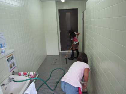 体育館のトイレをのぞいてみると,4年生が一生懸命に掃除してくれていました。労を惜しまず,ごしごしと力強くブラシをかけている姿は,とても清々しかったです。