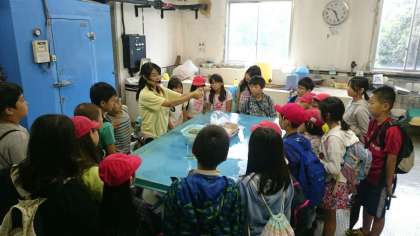 中に入り,バックヤード見学をしました。普段は見ることのできない,水族館の裏側を見せていただき,みんな興味津々の様子でした。