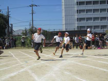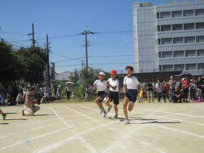 6年生が走ると,100Mがあっという間に感じられました。大迫力の徒競走でした。